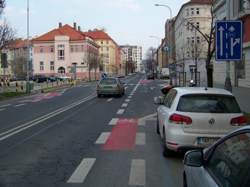 Příklad: Ulice Sportovní nebo Kodaňská ve Vršovicích, ulice U Uranie v Holešovicích. Ulice V Olšinách tam, kde má cyklopruhy.