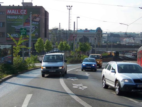 Příklad: Odbočení vlevo ze Sokolské do Rumunské, magistrála mezi Hlavním nádražím a Vltavskou, Kutnohorská mezi Uhříněvsí a Říčanami