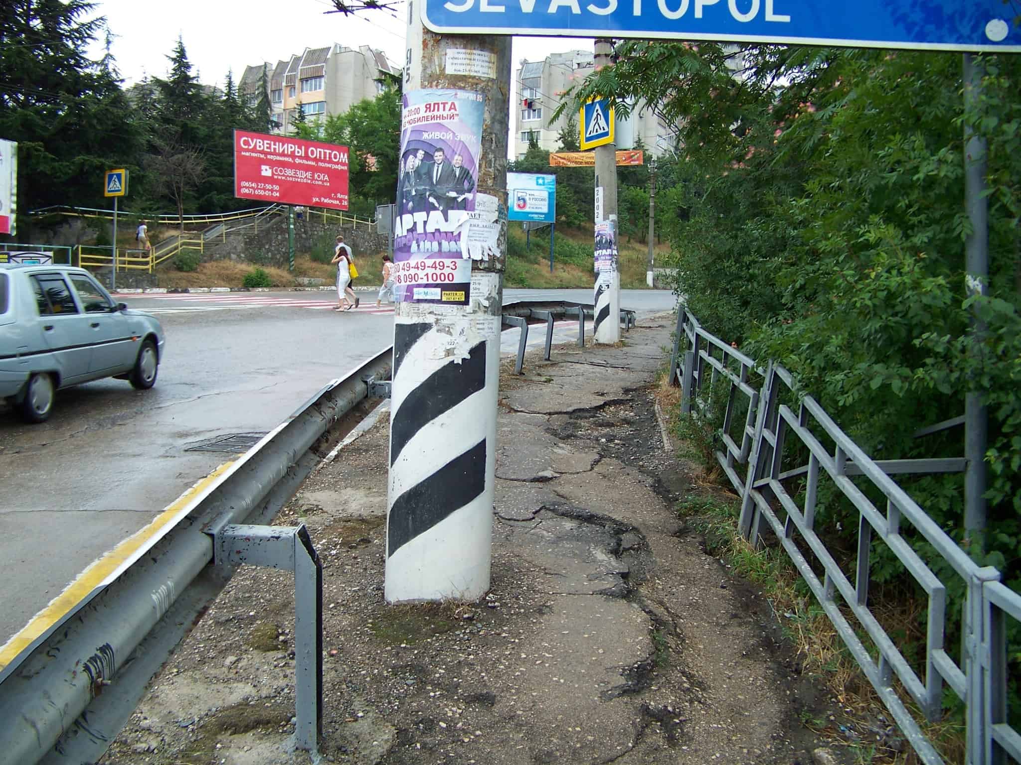 V krymské Aluště, letovisku u Černého moře, mají problémy se zácpami i parkováním. Z vnitrozemí sem vede nejdelší trolejbusová trať světa. Po odjezdu ze smyčky na konečné je třeba natáhnout přes vjezd provaz, aby se do návratu dalšího spoje neproměnila v parkoviště. Že se zde zapomíná na kola, přičítám běžnému nedostatku představovosti, za nejabsutrdnější ale považuji totálně rozbité chodníky podél zcela ucpané silnice s přeplněnou linkou autobusu. Lidé radši jeli plným vozem, než by šli pěšky po nerovné ploše.