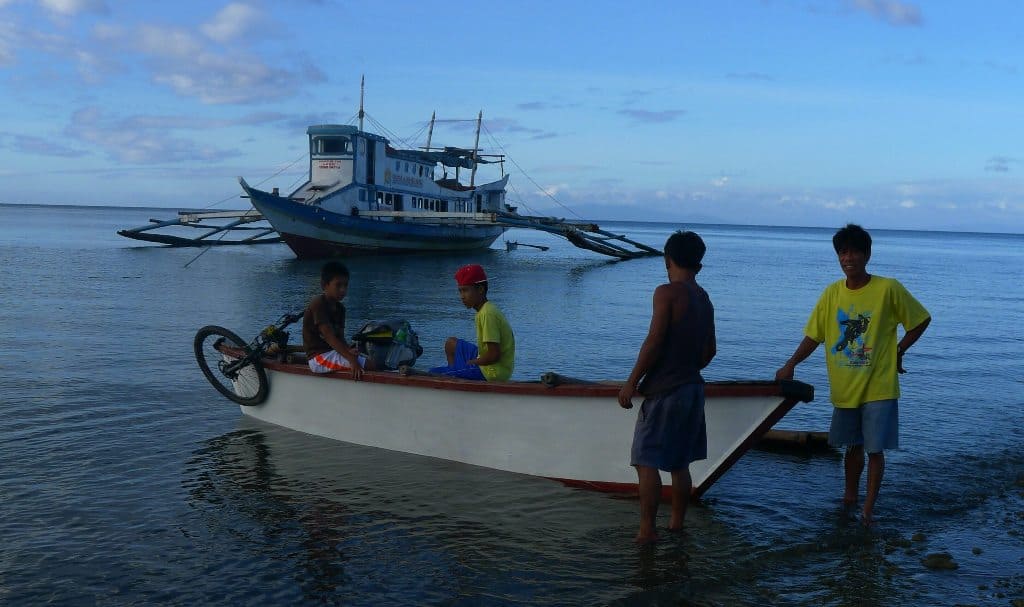 Lodě si staví sami. Vždycky do nich dají nějakej motor ze starýho trucku. Výhodou je, že jejich lodě mají nízký ponor, takže se dostanou všude. Ono Filipíny nejsou zrovna koupací ráj. I dva kilometry od pobřeží se brodíš.