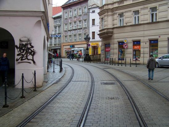 Problémovou dlažbu lze samozřejmě řešit několika způsoby. V Lazarské, kde se koleje překládají, bude mezi kolejemi stejný asfalt, jako vznikl v Myslíkově. I dlažební kostky se ale dají položit tak, že budou pro kolo v pohodě sjízdné. Umí to na Západě (Kodaň), Východě (Vilnius) i u nás (Olomouc).