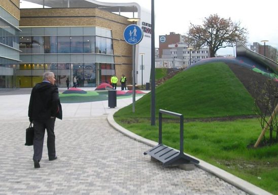 Kromě toho jsou u západního vchodu umístěny cyklistické stojany. Není to sice městská podkova, ale kolo k nim zamknete. Fotografoval jsem je ještě před tím, než byly na podzim umístěny.