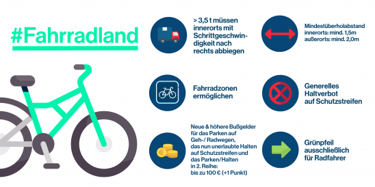 Na rozdíl třeba od Česka doposud bylo možné v německých ochranných cyklopruzích zastavit až na 3 minuty, což je často zneprůjezdňovalo. Tomu by nyní měl být konec a měl by začít platit úplný zákaz zastavení v ochranných cyklopruzích. Ochranné cyklopruhy sice v Česku máme teprve pár let, zákaz zastavit a stát v nich ale platí již od jejich zavedení.