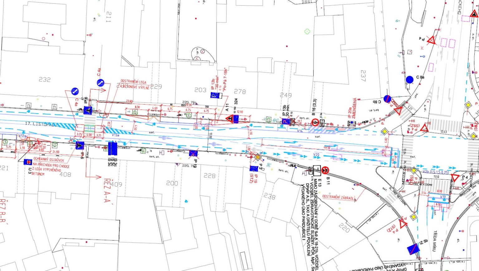Zastupitelstvo Pardubic se na svém zasedání 21. října rozhodlo odložit projednání projektu nového dopravního značení zahrnujícího cyklopruhy na třídě 17. listopadu. Proti záměru vyznačení cyklopruhů vznikla petice majitelů místních obchodů a nemovitostí. Město chce s petenty dále jednat.