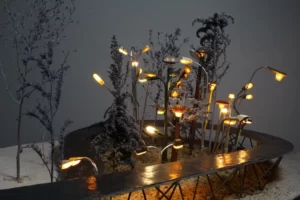 Výzdoba předpolí mostu od českého umělce Kryštofa Kintery.
