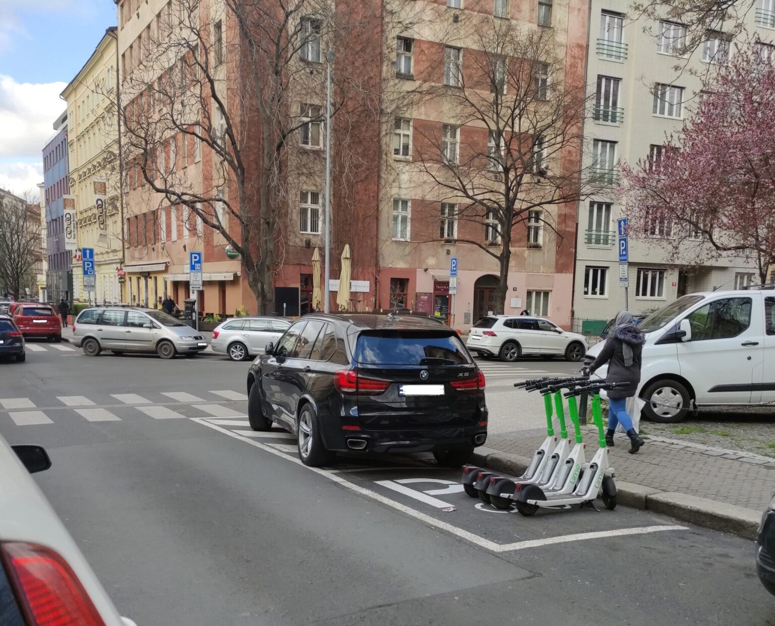 Různá města a MČ v posledních době: "Potřebujem někam dát kola a koloběžky. Dejme to před přechody - je přes to v poho vidět a znemožní to, aby tam stála auta."