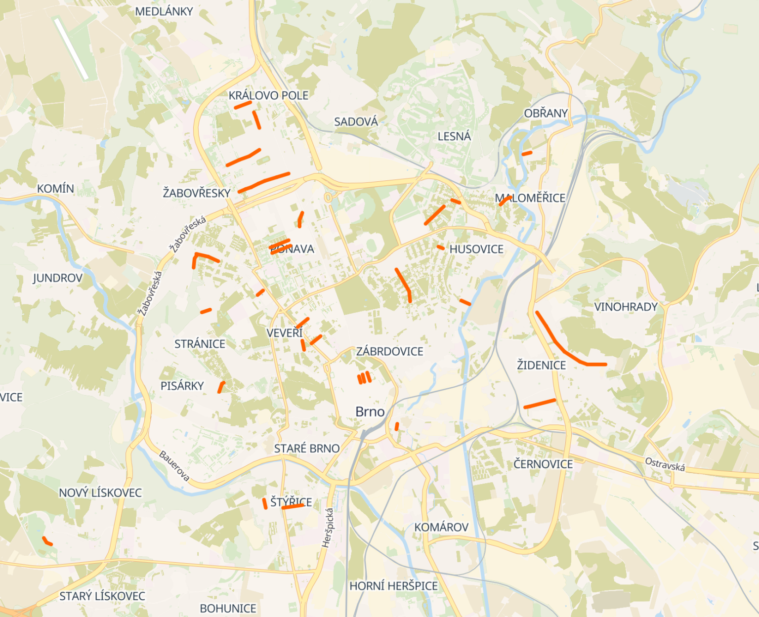 • Brno-Žabovřesky: Foustkova, Marie Steyskalové a Šeránkova.
