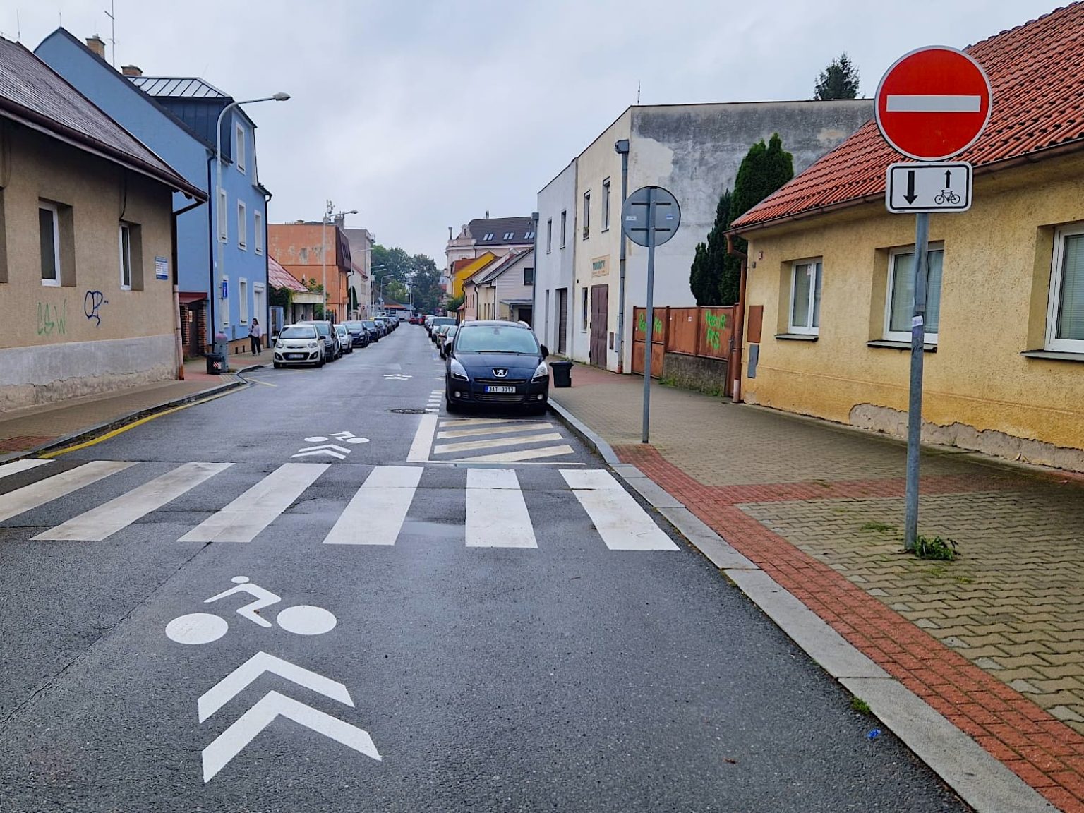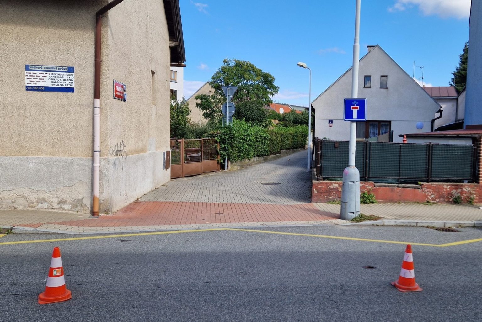 Další drobnou novinkou v okolí je použití nové značky slepé ulice s výjimkou pro cyklisty. Ta byla instalována v rámci cykloobousměrky v boční rezidenční ulici, která je pro auta slepá, pro pěší a cyklisty ale průchozí.