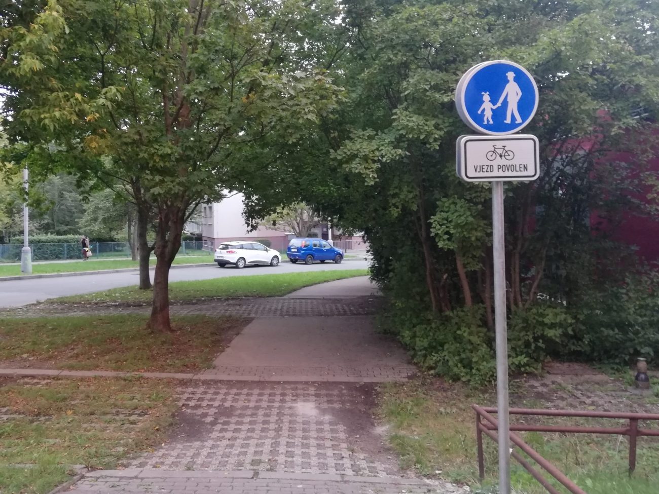 Některé další ulice, například Brichtova, Krškova a velká část Wassermanovy nebyly pro cykloobousměrky vyhodnoceny jako vhodné kvůli šířkovým poměrům. Zde je paralelně zajištěna prostupnost právě prostřednictvím pěších tras s vjezdem kol.