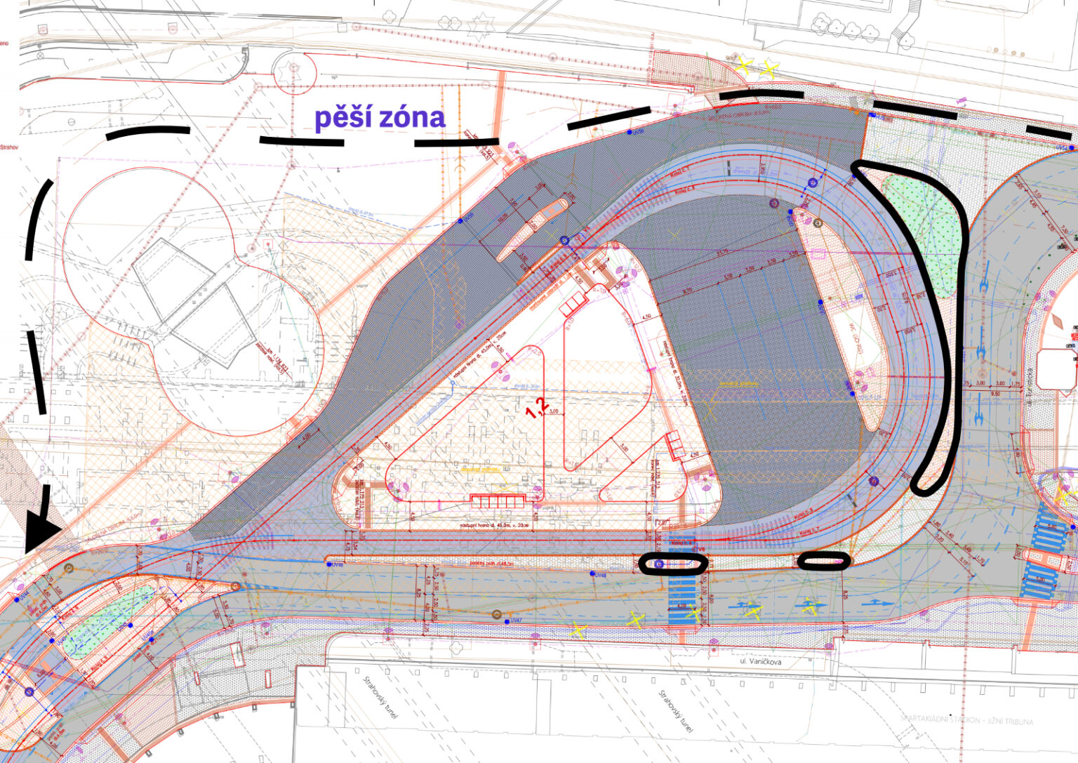 @Zuzana Poláková: dovolim si rict, ze spis MĚLA, nikoli MOHLA, vychazet z vykresu dopravniho znaceni. Jestli ono to nebyva tak, ze stavebni reseni a dopravni rezim na nem navrzeny spolu koresponduji a ze toto reseni byva treba i projednano. Ve schematu tak toho hapruje docela dost vcetne cele krizovatky s Belohorskou i obratistem u stadionu (dost podatatne vyznamove rozdily proti zobrazenemu schematu), vcetne stavebne zajistenych chranenych vazeb a neprimych levych odbocenich.