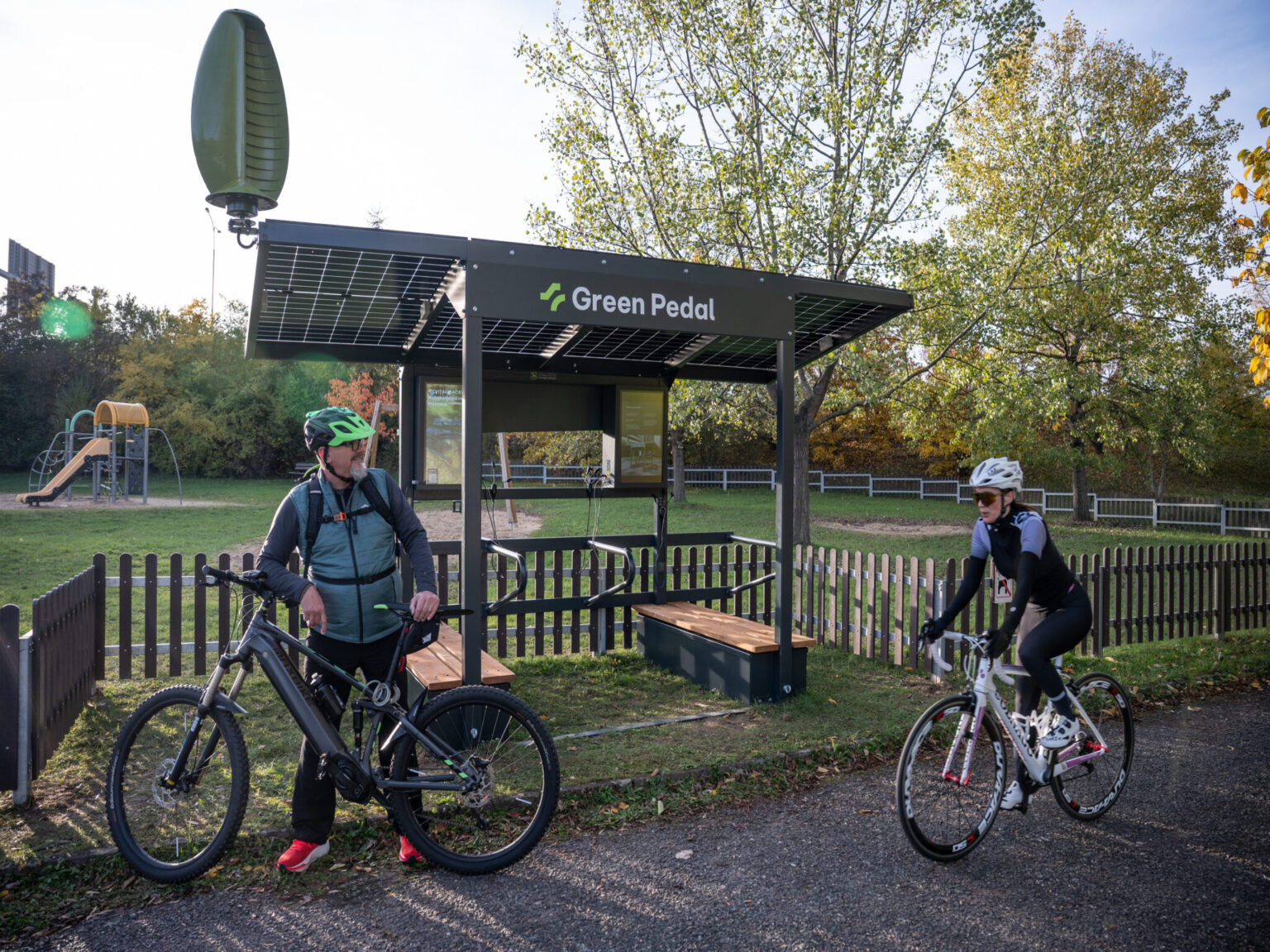 The startup GreenPedal was founded in 2018. Its stations, which operate with zero emissions and zero running costs, use components from Siemens and Victron Energy. The technology was developed in cooperation with the RTI research center at the University of West Bohemia in Plzeň.