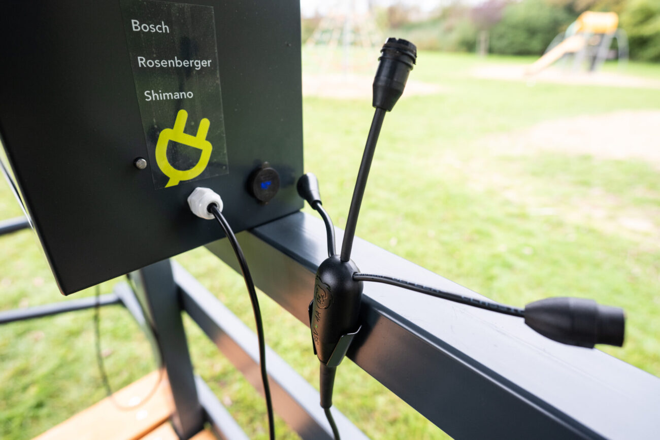 The station allows simultaneous charging of up to four e-bikes and also serves as a seating and secure parking area. It offers eight locking points for securing bikes by the frame and USB ports for charging small electronic devices. E-bike charging is free of charge. The unit is off-grid and does not require a building permit for installation.
