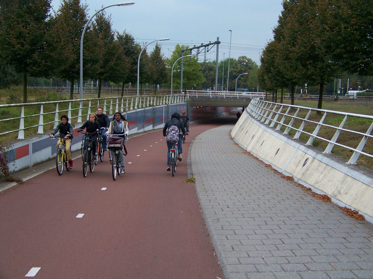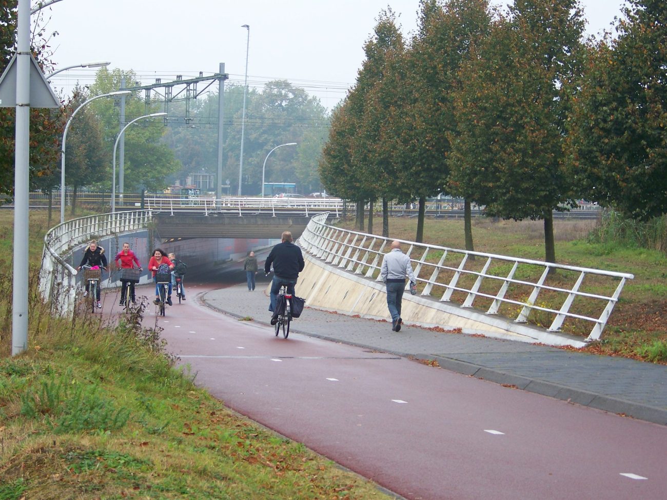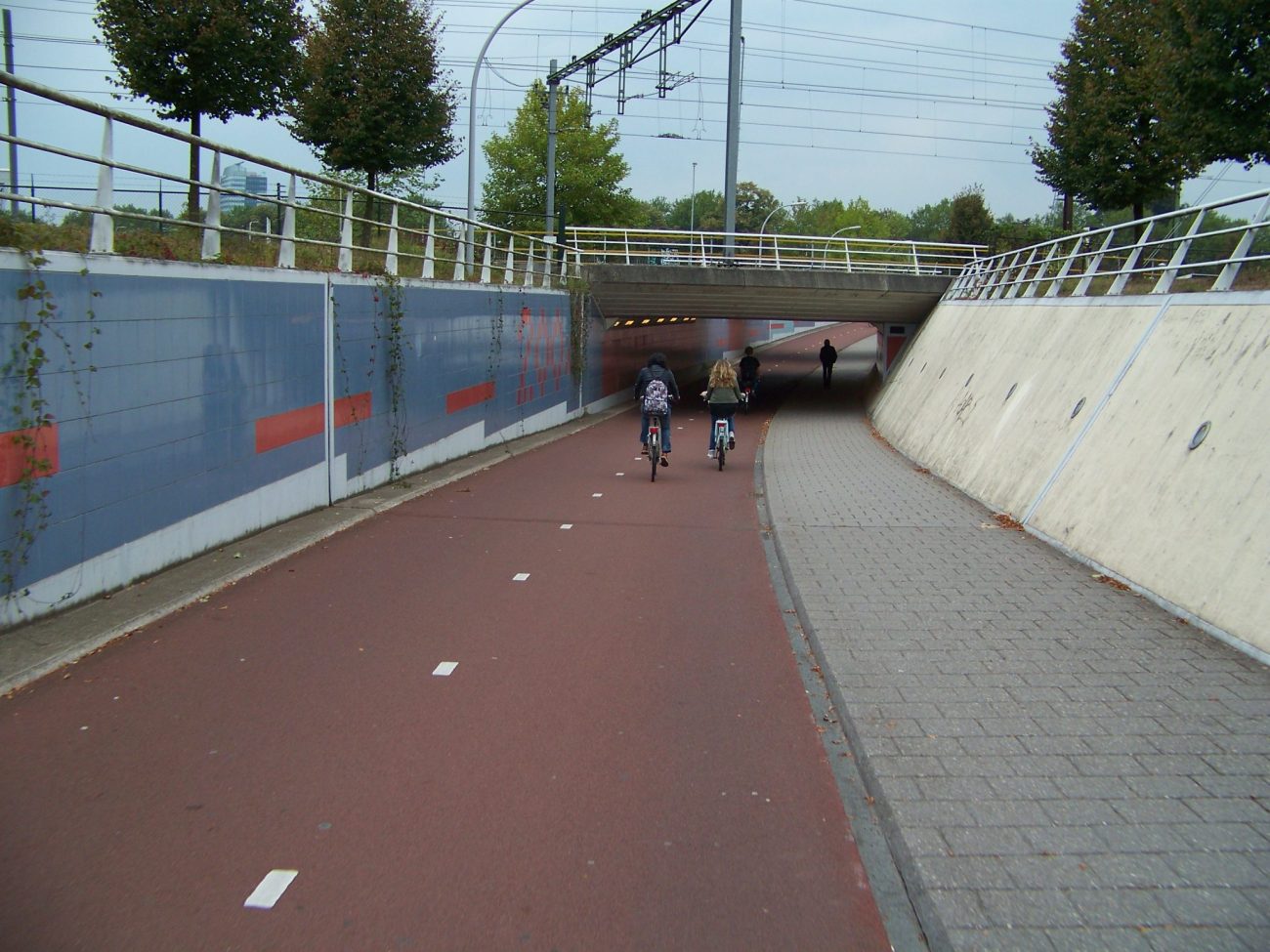 Cyklopodjezd Koggepad tvoří významnou spojnici v rámci města západně od nádraží. Mé fotky jsou z úterý a středy večer v druhé půlce září 2014. Na Google StreetView najdete západní i východní napojení podjezdu. Na západní straně navazuje převážně obytná čtvrť, a na východní nové centrum města. Řešení považuji za inspirativní ve světlosti podjezdu, šířce cyklostezky a chodníku, veřejném osvětlení a mírném sklonu ramp. Také v tom, že rampy jsou trasované přímo a neprodlužují cyklistům a pěším vzdálenost. Vše v Nizozemsku běžné.
