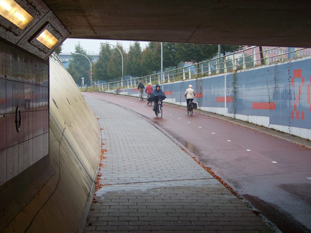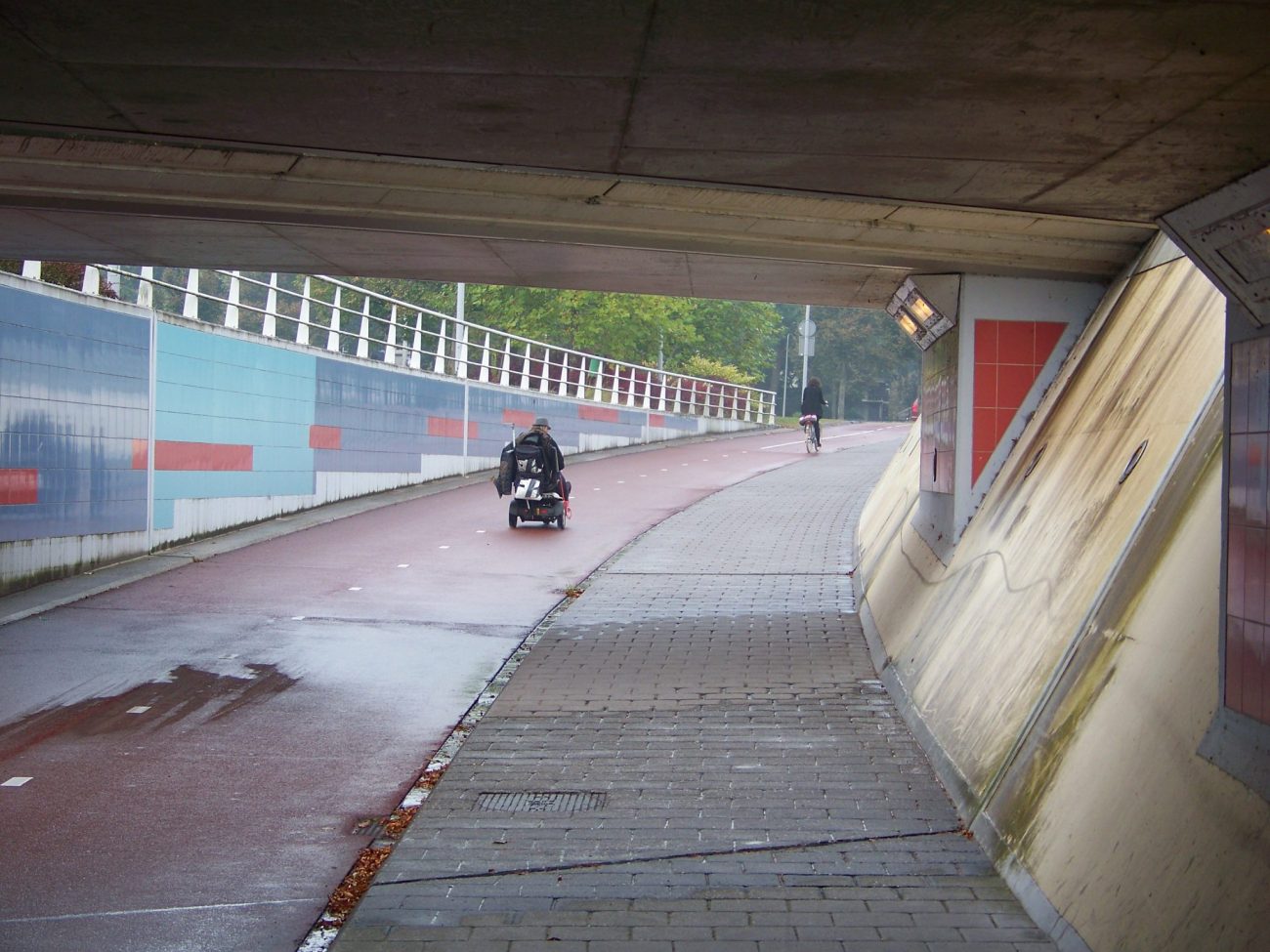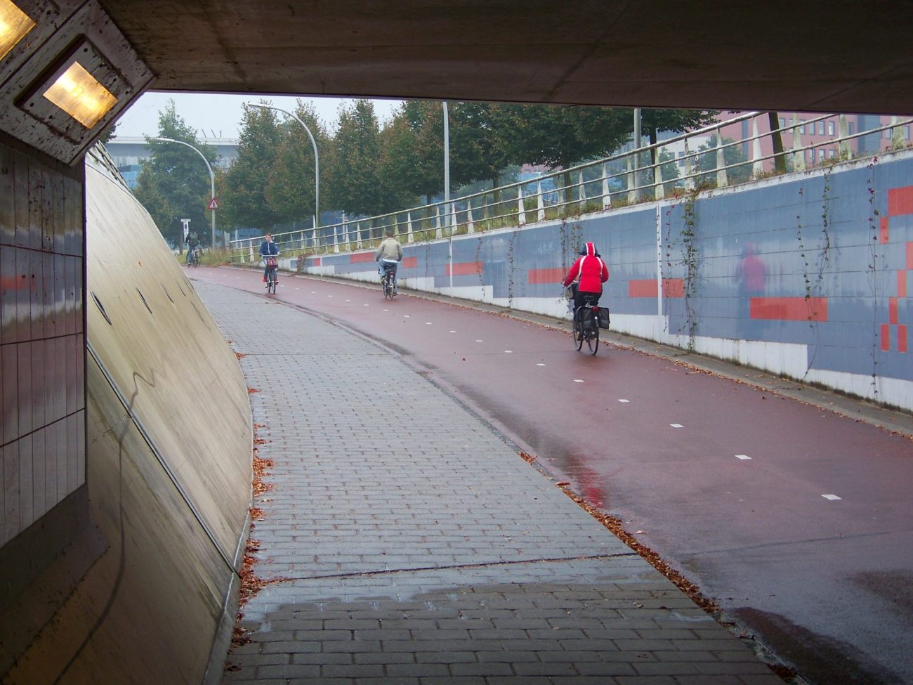 Cyklopodjezd Koggepad tvoří významnou spojnici v rámci města západně od nádraží. Mé fotky jsou z úterý a středy večer v druhé půlce září 2014. Na Google StreetView najdete západní i východní napojení podjezdu. Na západní straně navazuje převážně obytná čtvrť, a na východní nové centrum města. Řešení považuji za inspirativní ve světlosti podjezdu, šířce cyklostezky a chodníku, veřejném osvětlení a mírném sklonu ramp. Také v tom, že rampy jsou trasované přímo a neprodlužují cyklistům a pěším vzdálenost. Vše v Nizozemsku běžné.
