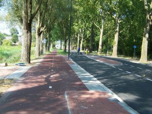 Silnice je opět vyvýšena, tentokrát kvůli odbočení další cyklostezky na východ a slabému odbočením aut na západ.