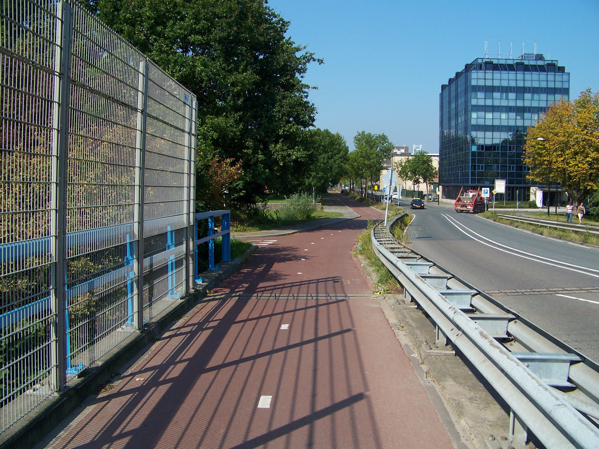 Doleva dolů odbočuje cyklistická rampa Kleipad. Propojuje cyklostezku podél silnice s cyklostezkou dole severně podél dálnice.
