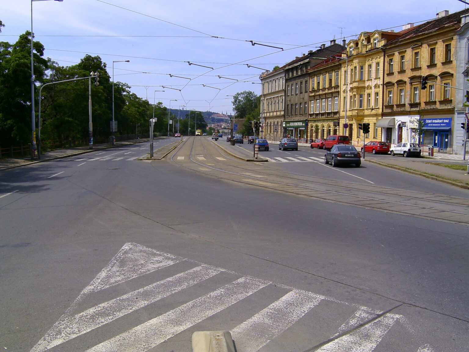 From Malá Strana and the city center to Stromovka Park, lower Letná, and Northern Prague along the Vltava, it was always most practical to take Nábřeží Kapitána Jaroše and turn left into Dukelských hrdinů Street. However, making a left turn on a bike from the left lane, which was a continuous through-lane, was always extremely problematic for cyclists. Crossing the embankment via a pedestrian crossing with a high traffic island was also absolutely terrible for cycling.