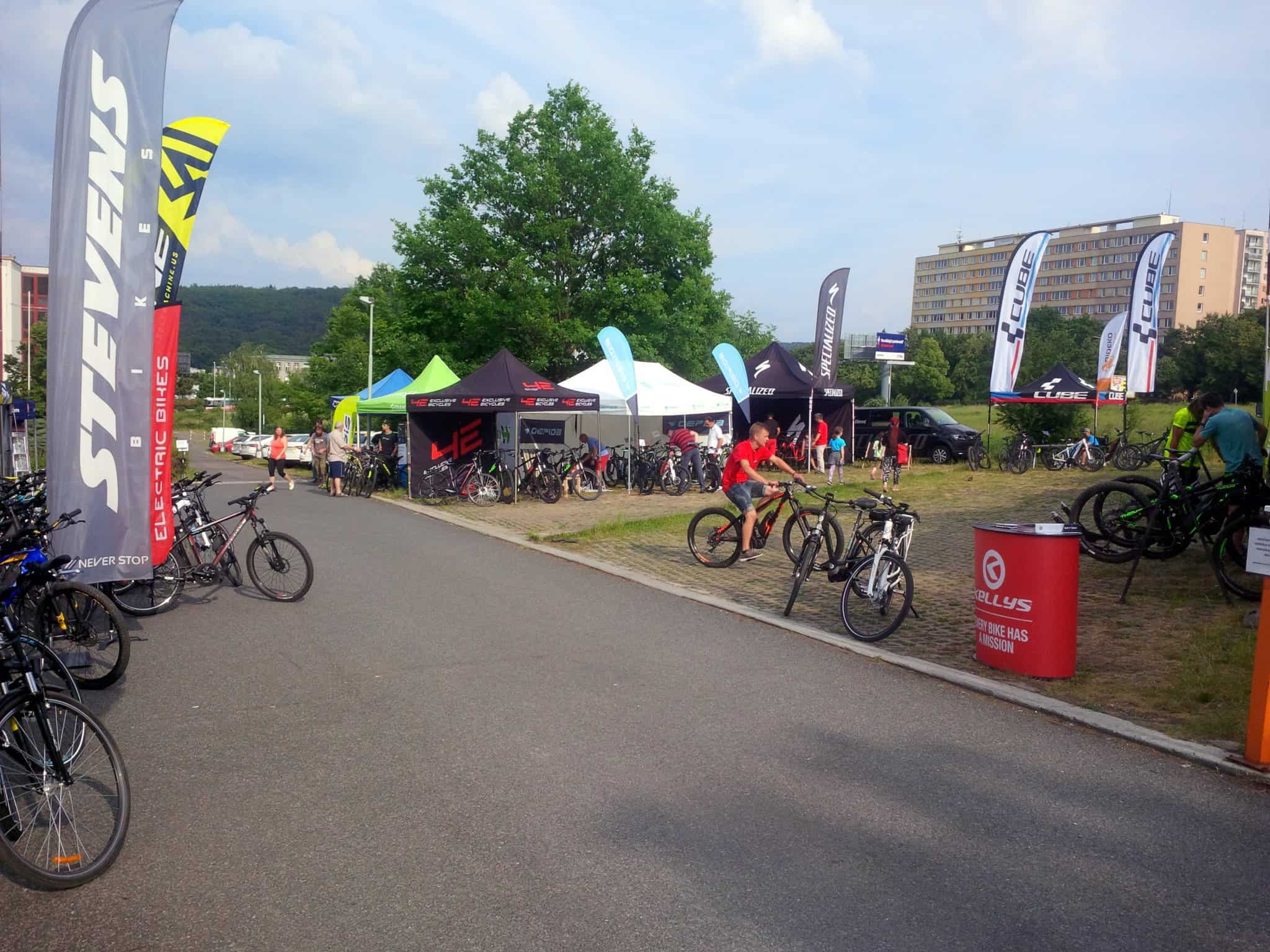 V sobotu a neděli 19. a 20. května se u showroomu firmy Ekolo konal festival elektrokol Ekolo test & fest s možností vypůjčení desítek modelů. Z firem byly k vyzkoušení kola značek 4EVER, Agogs, Apache, Crussis, Cube, Galaxy, Gepida, Ghost, Giant / LIV, GoCycle, Kellys, Lovelec, Moustache, Rock Machine, Specialized, Stevens, Totem a dalších, především z kolekcí 2018. Možnost projet si v terénu elektrokola, která jinak společně vidíme na veletrzích, využilo několik stovek návštěvníků. V průběhu dne pak byly na pódiu podrobně představeny desítky elektrokol včetně kola od Specialized s příšlapem do 45 km/h, schváleného pro provoz na silnicích v kategorii moped. Přinášíme vám několik fotografií z návštěvy akce.