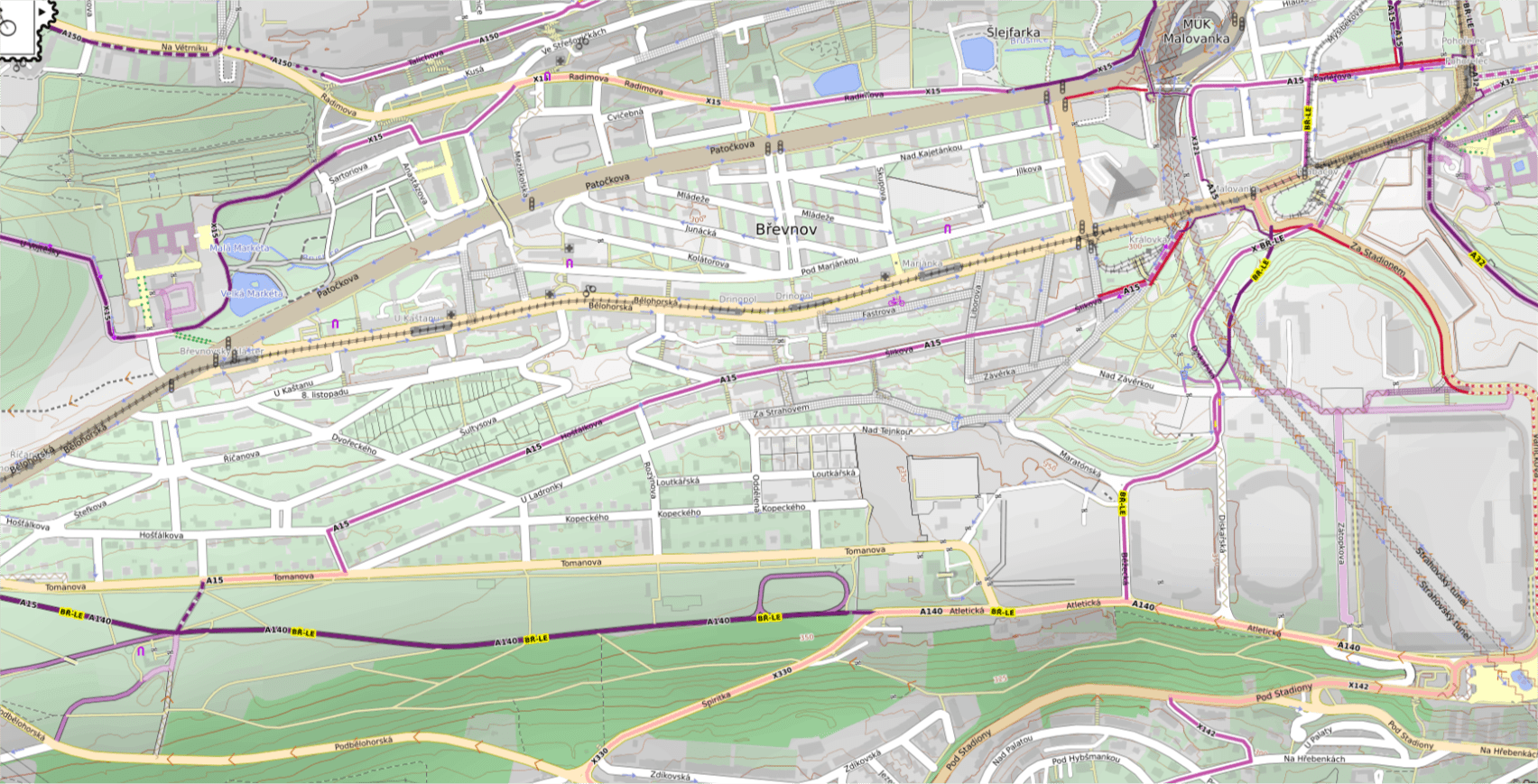 Dříve zjednosměrněné úseky ulic Gymnastická a Šlikova v oblasti Královky na Praze 6 byly formou protisměrného vyhrazeného cyklopruhu zobousměrněny. Díky tomuto opatření je opět zprostupněno klidné spojení oblasti Malovanky s parkem Ladronka. Daný průjezd v tomto směru také nabízí přívětivý sklon stoupání. Jedná se o jeden ze záměrů MČ Praha 6, o který byl také urgován lokální skupinou Cyklisté sobě.