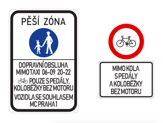 Návrh zákazové značky značky označující pěší zónu. Zdroj: Praha 1
