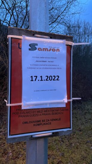 Podchod, kterým vede páteřní cyklotrasa A 21, byl uzavřen od června loňského roku. Kvůli souběžným uzavírkám chodníku na mostě mezi Šeberovem a Opatovem a podchodu mezi Újezdem a Průhonicemi byla ve druhé polovině loňského roku zcela přetnuta veškerá bezmotorová spojení přes D1 na jihovýchodě Prahy (více zde).