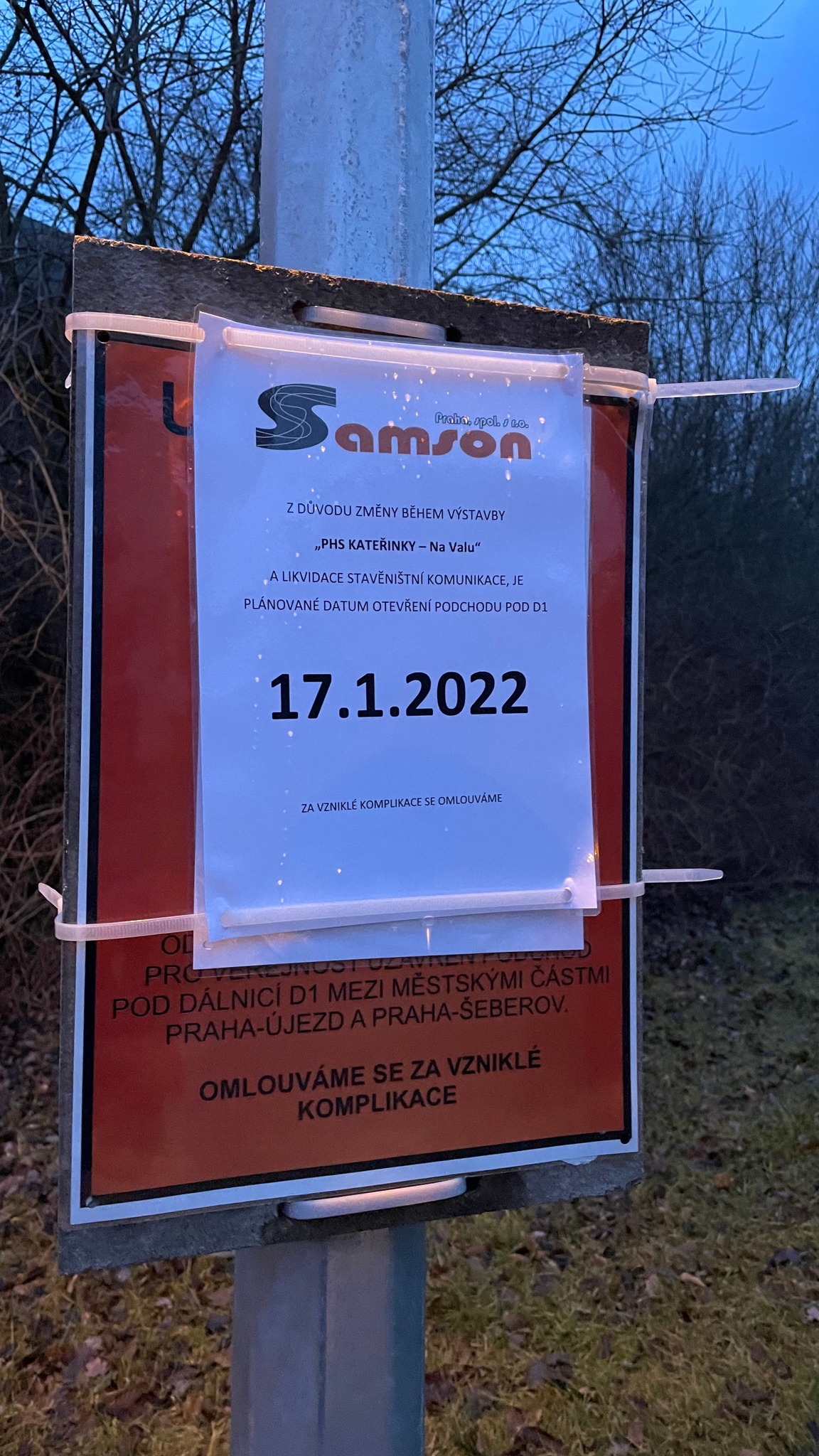 Vyplývá to z cedule vylepené u uzavřeného podchodu, jejíž fotografie byla zveřejněna v sousedské skupině obyvatel Prahy 4 a 11.